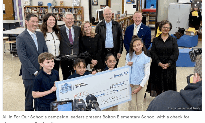 He was recently highlighted in the news as a campaign leader for All In For Our Schools, a coalition supporting Winston-Salem/Forsyth County Schools by raising vital funds for classroom supplies and resources. Thanks to this community-wide effort, the campaign has already achieved its $1.4 million goal, ensuring teachers and students have access to essential supplies throughout the school year.